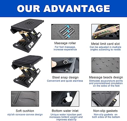 Product features:ERGONOMIC FOOTREST, no need to install, simple operation, the product can be ADJUSTED in multiple angles, increase the product use experience, massage the textured surface, massage roller,can play the role of FOOT MASSAGE