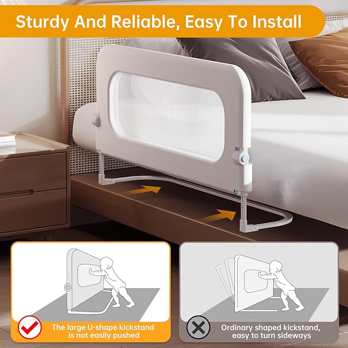 Easy to Assemble: This bed side rails kit set up effortlessly without the need for tools. This portable bed rails for toddler spans 32 inches, fitting various bed sizes including queen, king, bunk, full and twin beds.