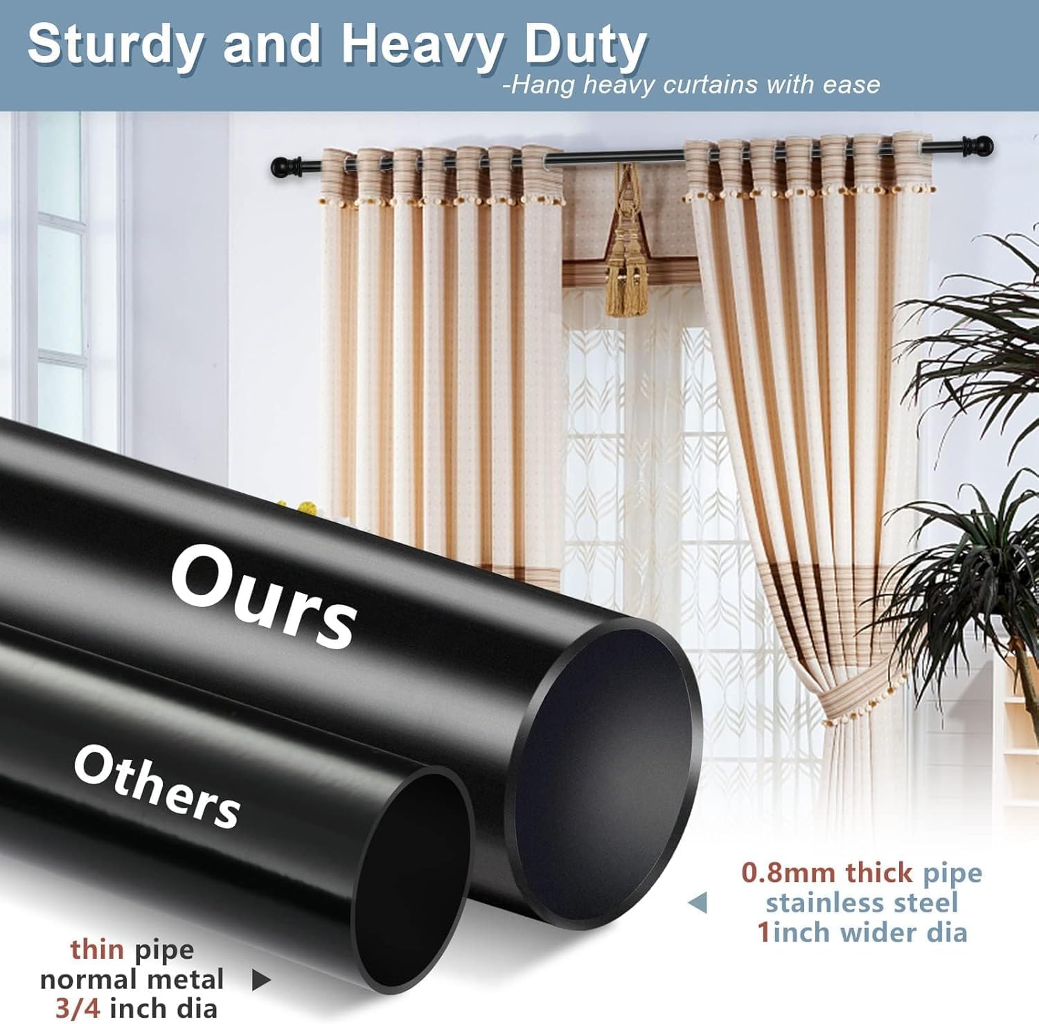 Heavy duty and Sturdy- Crafted with premium stainless steel and 8mm thick pipe,make this 1 inch dia curtain rod set sturdy enough to hold light to heavy curtains with ease