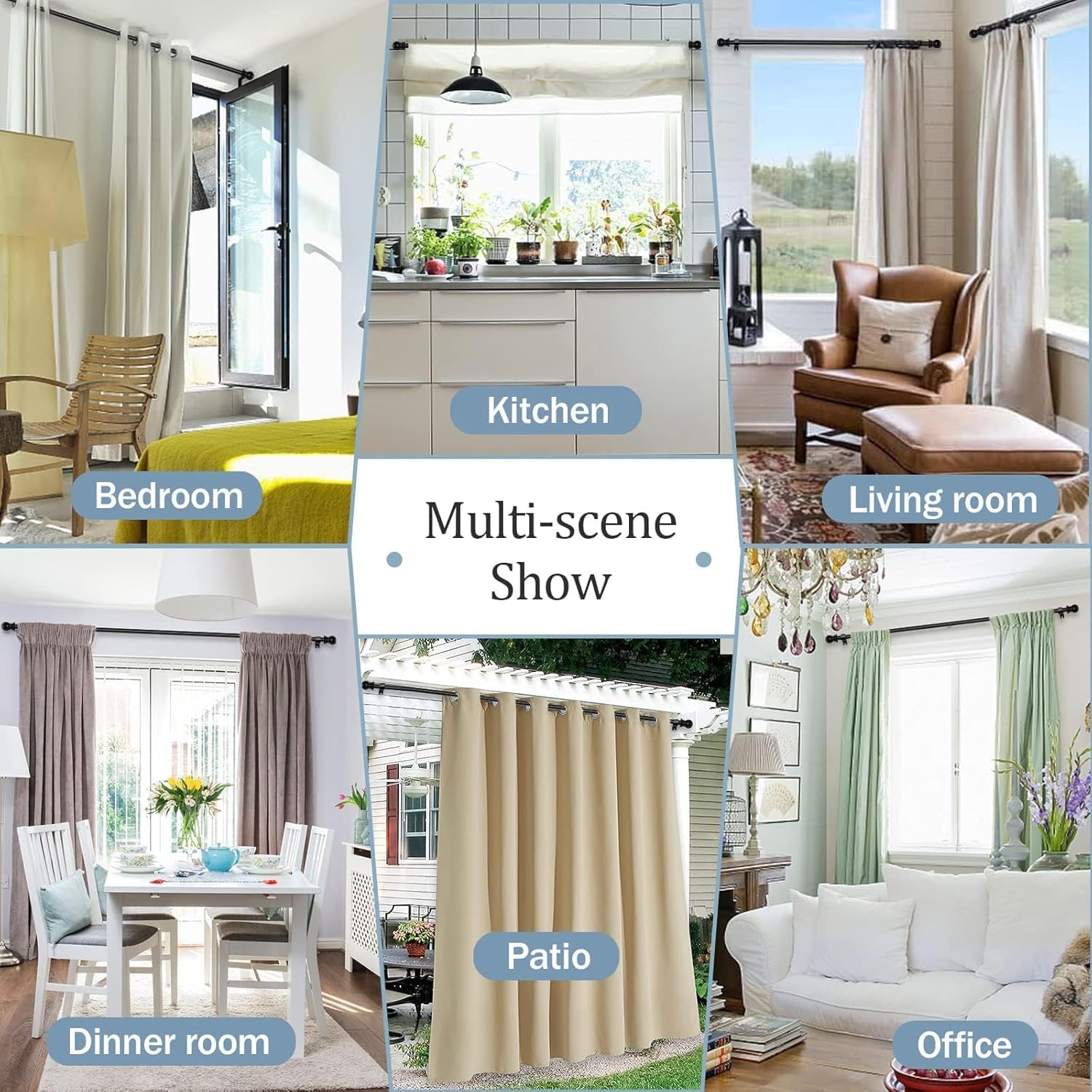 Compatibility – This blackout curtain rods is ideal for grommet,back tab,rod pocket and tab top curtains. Decorative round finals looks simple and classy,great as your bedroom curtain rods,living room darkening curtain rod,kitchen curtain rod,sliding glass door curtain rods,patio door curtains rods,etc