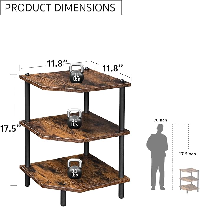 Multi Purpose and Versatile:This 3 tier Corner Shelf, Featuring a Tendy Rustic Brown Finish, Use it as a Spice Rack, Coffee Station Organizer, Over-sink Shelf, Bathroom Countertop Organizer, or Plant Stand. Its Practical Design fits Perfectly in Any Room, Including the Kitchen, Bedroom, Living Room, or Office.
