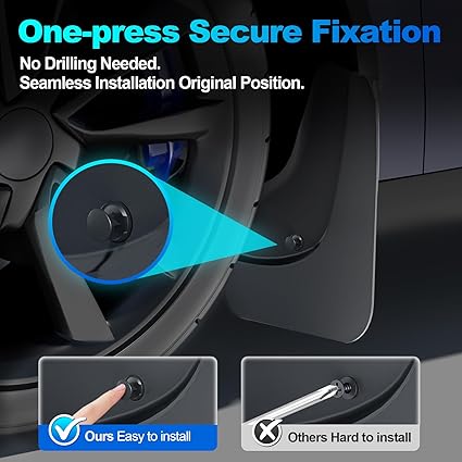 【Original Hole Install】Installing this Tesla accessories Model Y Juniper mud flap is a breeze – no extra tools or Tesla car expertise required. Just align the studs with the grooves on the cover plate, press down to secure the bolts, and you’re done. We’ve even included a full set of installation tools, and there’s a helpful video guide for any uncertainties